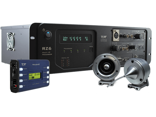 TDT(Tucker-Davis Technologies)听觉刺激系统是一套专为听觉神经科学与临床前研究设计的高精度声学刺激与同步记录平台,能够生成、控制并实时调整各种类型的声刺激,并与神经电生理系统无缝集成。该系统常用于ABR(听性脑干反应)、CAP(复合动作电位)、DPOAE(耳声发射)、听觉皮层记录等实验。